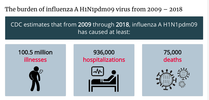 自2009年引入甲型H1N1流感病毒以来,该病毒每年在美国季节性流行,每年都有许多人因此而患病、住院甚至死亡。