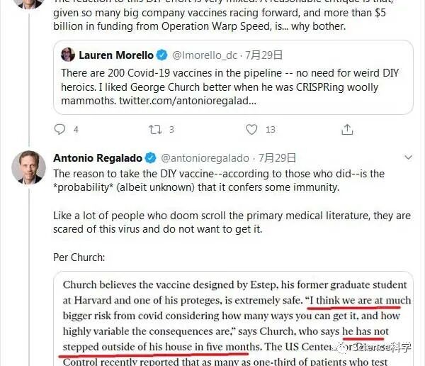 纽约大学朗格尼医学中心的生物伦理学家 Arthur Caplan 看了白皮书,他认为 Radvac 是 "疯狂的疯子" 。Caplan 在一封电子邮件中说,鉴于疫苗质量控制的重要性,他认为自我实验 "没有必要"。相反,他认为有很高的 "伤害潜力 "和 "毫无根据的热情"。但 Church 对此并不认同,他认为疫苗的简单配方意味着它可能是安全的。"我认为更大的风险是它是无效的,"他说。