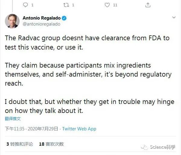 可以预见的是,许多生物伦理学家发现这种疫苗开发的方法是有问题的,正如编辑 Regalado 所报道的那样。