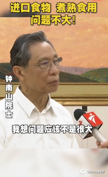 钟南山接受采访时表示,我们国家对进口的食物包装都进行比较严格的检测,这些东西洗干净、煮熟吃,我想问题应该不是很大。