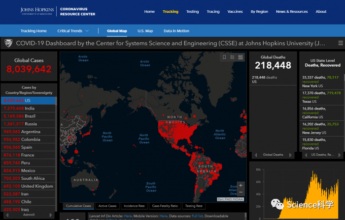 根据约翰斯·霍普金斯大学发布的新冠疫情最新统计数据,截至当地时间周五,美国新冠肺炎确诊病例已超800万例。这个严峻的里程碑,使美国在总病例方面领先于其他所有国家。美国也有超过21.8万例新冠肺炎死亡报告,再次刷新了占全球新冠总死亡人数约20%的记录。