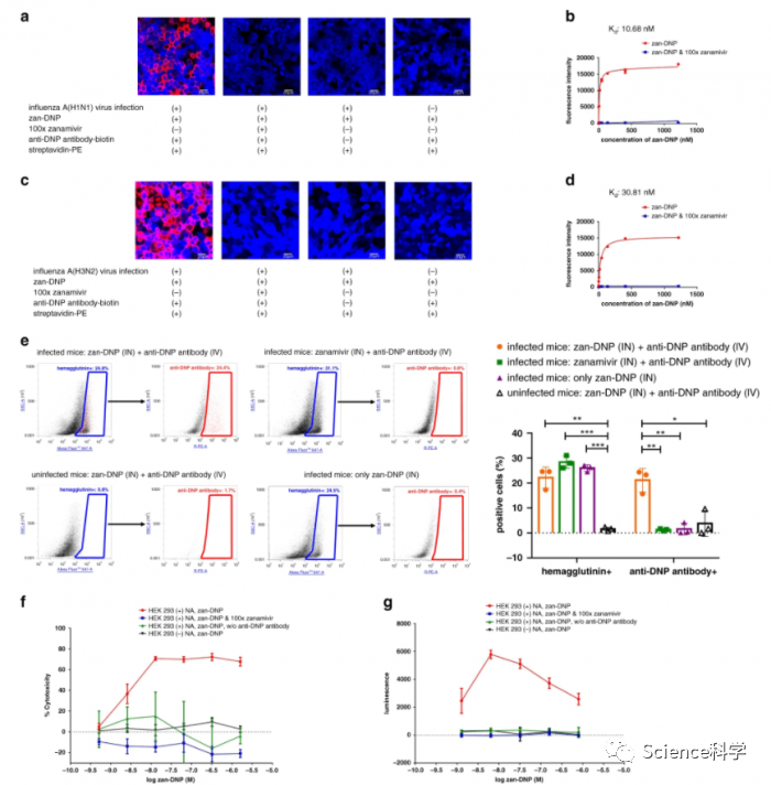 研究人员还指出,考虑到他们对这类抗病毒疗法和疫苗研究的了解,“zan-DNP对涉及极高病毒载量的晚期感染的强力根除是没有预料到的。zan-DNP在接种后3天内对感染了100倍MLD50流感病毒的小鼠产生完全反应的能力,是接受传统非靶向扎那米韦的疫苗个体的数据所不能预测的。”