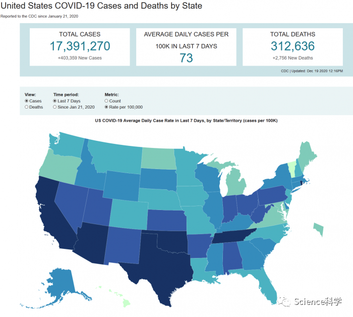 根据美国约翰斯·霍普金斯大学发布的统计数据,截至美国东部时间19日晚,美国累计确诊病例已超过1760万例,累计死亡病例超过31.5万例。