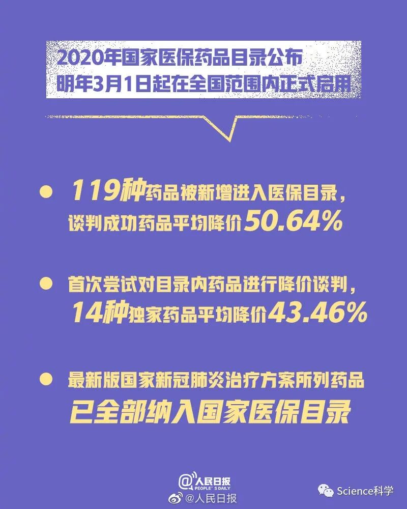 另外,据介绍,为支持新冠肺炎疫情防控,本次调整高度重视新冠肺炎治疗相关药品的保障工作,将利巴韦林注射液、阿比多尔颗粒等药品调入目录,最新版国家新冠肺炎诊疗方案所列药品已被全部纳入国家医保目录。