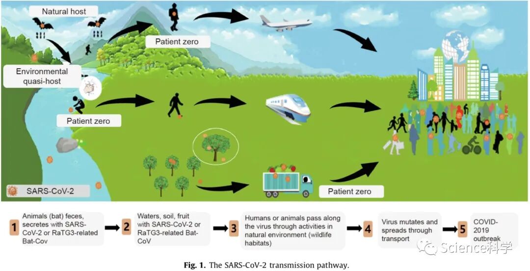 图片来源:清华大学环境学院特聘教授、中科院生态环境研究中心研究员、中国工程院院士曲久辉等人论文“Natural Host–Environmental Media–Human: A New Potential Pathway of COVID-19 Outbreak ”。