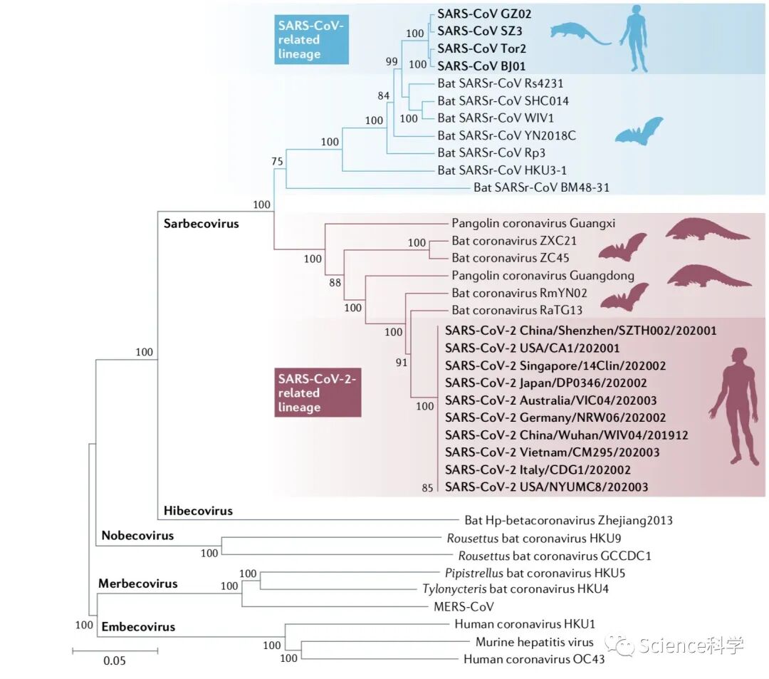 在此次疫情中,中科院上海巴斯德研究所研究员郝沛与军事医学研究院国家应急防控药物工程技术研究中心研究员钟武、中科院分子植物科学卓越创新中心研究员李轩等人组成的团队,和石正丽等人率领的团队,分别在1月21日和1月23日对外公布研究结论,均揭示了新冠病毒与蝙蝠之间存在的相关性。这是最早关于病毒源头的研究信息。