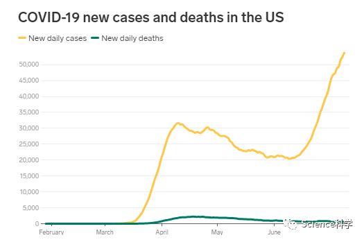 近日研究人员称,美国新冠病毒感染第二次高峰的死亡率可能不会像第一次那么高。当地时间7月9日,美国报告了6万多例COVID-19确诊病例,这创下了单日新增确诊病例数的纪录。美国新冠确诊病例已经激增了一个月左右,然而根据最新的数据,整个6月和7月的死亡率一直在稳步下降。