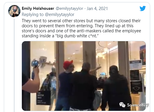 BuzzFeed新闻本周刊登了一篇文章,详细介绍了一个涉及无口罩抗议者冲击当地杂货店和商场的情节。在这篇报道所包含的视频中,所表现出的无知令人震惊。在杂货店顾客和抗议者愤怒的交流中,抗议者驳回了人们对他没有戴口罩的担忧。“我的检测结果是阴性,那你还担心什么?”