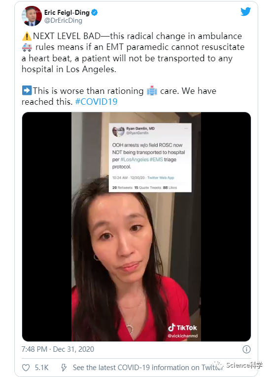 洛杉矶的COVID-19病例正以如此惊人的速度倍增,它们现在有可能使地区医院不堪重负。周一,由于洛杉矶的新冠疫情爆发给医院和医院资源带来的压力,洛杉矶紧急医疗服务机构发布了两份备忘录,其中一份备忘录指示,遇到心脏骤停的病人,如果不能在“现场”进行抢救,就不应该被送往医院。洛杉矶和加州已经成为美国受疫情影响最严重的重灾区。