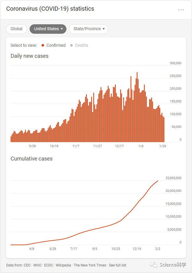 截止目前,美国已有超过 2640 万的 COVID-19 感染者,并且已经造成了至少 44 万人的死亡。