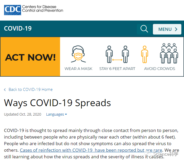 美疾控中心:多数人是在六英尺内被传染COVID-19的