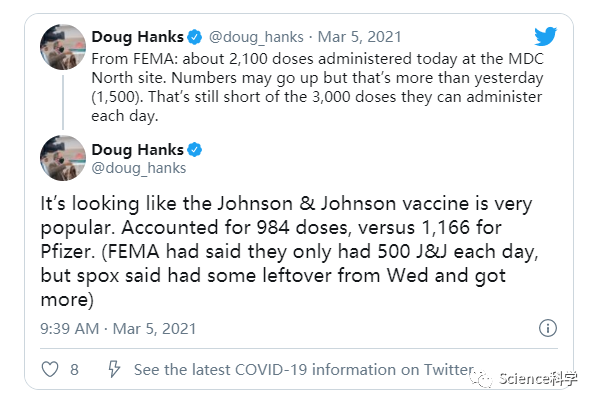 这让那些担心疫苗接受度问题的专家们大大松了一口气。即使该疫苗与其他两种授权疫苗一样,但总的来说,在试验测试期间,其预防疾病的能力并没有那么强。他们认为可能会有这样的看法(大部分是没有根据的),即强生疫苗不是一个好的选择。