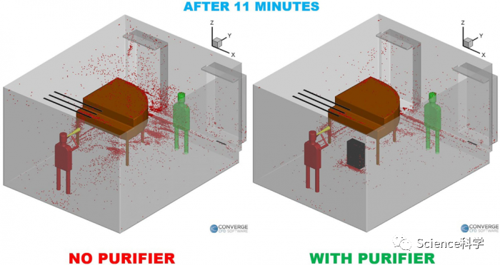 他们的模拟结果表明,HEPA 空气净化器应直接放置在排出气溶胶的人或仪器前,并远离房间内其他需要保护的人。研究人员的目标是,按照世界卫生组织的指南,房间内每个人的通风率为每小时288立方米。据他们所知,这是使用 HEPA 空气净化器对抗 COVID-19 的最全面调查。