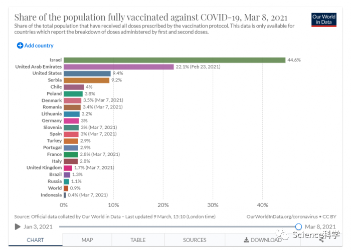 以色列完成了一场其他国家无法比拟的疫苗接种运动。以色列用一剂辉瑞/生物技术公司的疫苗为近500万人接种了疫苗,截至周一上午,已有近380万人接种了两剂疫苗。对于一个拥有约930万人口的国家来说,这是一项庞大的工程。以色列的目标是在4月底前为其全部成年人接种COVID-19疫苗。鉴于疫苗制造商最近一直在加紧生产,这似乎是完全可以实现的。