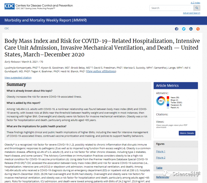 CDC研究称超重和肥胖会增加发生严重COVID-19相关疾病的风险