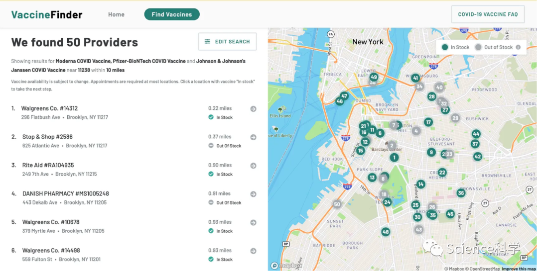 2月底,它发布了一份面向公众的地图,其展示了美国全国近3万个疫苗供应商的疫苗库存。作为联邦零售药店计划的一部分,它覆盖了全国所有提供疫苗接种的药店以及少数几个州的额外地点,包括阿拉斯加、印第安纳州、爱荷华州和田纳西州。指导人们接种非COVID -19疫苗的功能现已下线。