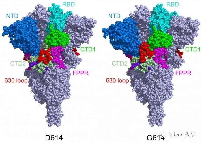 当研究小组对突变的刺突蛋白进行成像时,他们发现D614G突变通过阻止过早的形状变化来稳定刺突。有趣的是,这种突变同时还能使刺突蛋白跟血管紧张素转换酶受体的结合更弱,但事实上,刺突蛋白不太容易过早分解,这使得病毒总体上更具传染性。