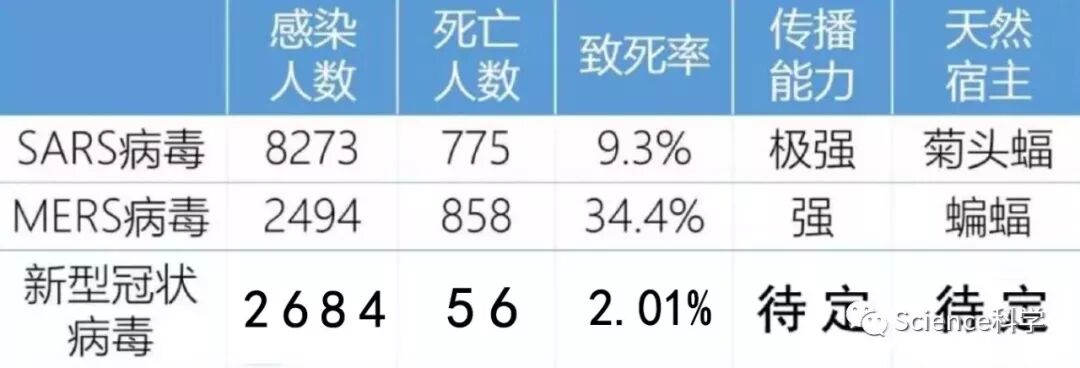 SARS、MERS和2019-nCoV对比 数据有误无权删图,详情请参照丁香园数据