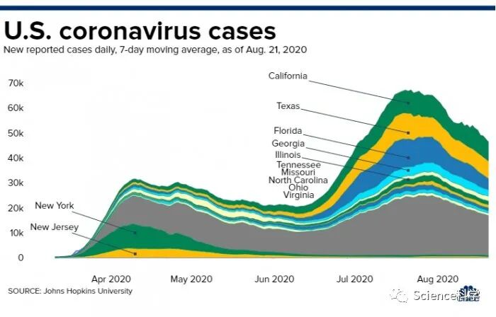 美国疾病控制和预防中心(CDC)主任Robert Redfield博士本周早些时候表示,他希望看到每天的新增病例数降到1万例以下,死亡人数降到250人以下。截至目前,美国平均每天新增病例超过4万例,死亡病例超过1000例。