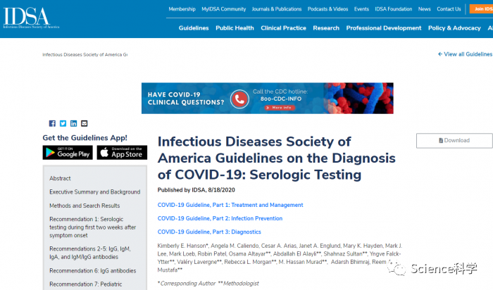 IDSA的抗体检测指南可以在此链接上找到。