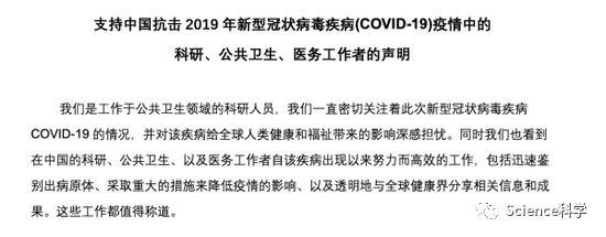 附:支持中国抗击2019年新型冠状病毒疾病(COVID-19)疫情中的科研、公共卫生、医务工作者的声明(中文版)