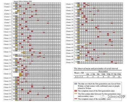 研究通过收集确诊病例的人口统计学特征,接触史和症状发作时间等数据,评估了50个感染集群,包括124例患者在潜伏期的传播潜力。所有继发病例都与症状发作之前的第一代病例有过接触。