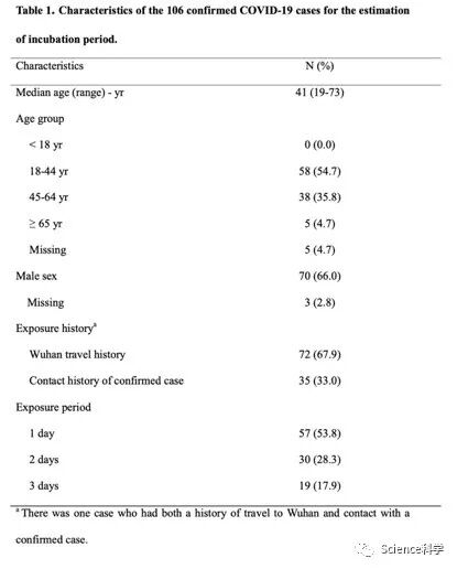 在106例确诊的新冠肺炎病例中,有明确的旅行或接触史,中位年龄为41岁(19-73岁),其中70例(66.0%)为男性。