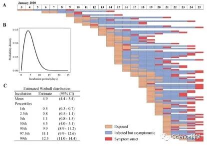 为了提高潜伏期估计的准确性,研究团队所选病例仅限于准确暴露期不超过三天的病例。此外,研究者只选择了在春节(2020年1月25日)之前有症状发作的病例,以减少接触时间的偏差,因为春节探亲访友的习俗可能会导致人们的接触和交流增加,从而接触未知的传染源。