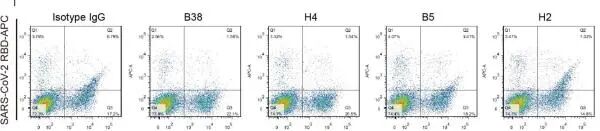 研究还表明,B38和H4能识别RBD上的不同表位并部分重叠。