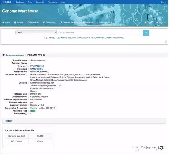 2020年1月22日,我国搭建的新型冠状病毒信息库(https://bigd.big.ac.cn/ncov)正式上线。