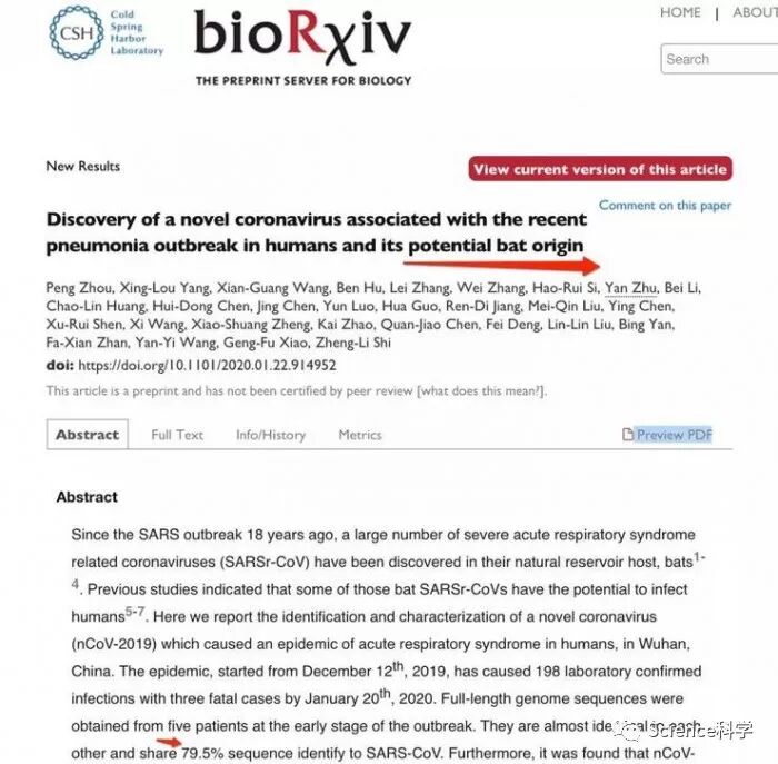 值得注意的是,23 日,中国科学院武汉病毒研究所石正丽团队在 bioRxiv 预印版平台上发文称,新型冠状病毒(2019-nCoV)或来源于蝙蝠。