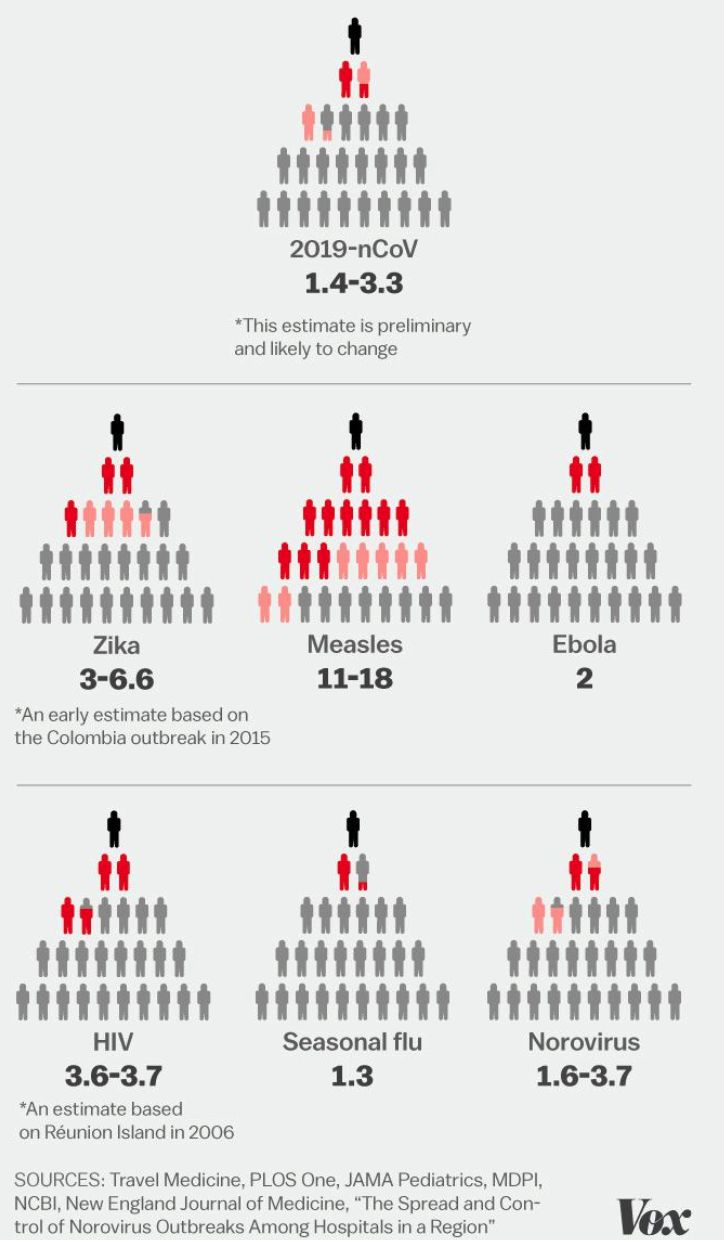 常见主要传染病 Ro值,来源:Vox