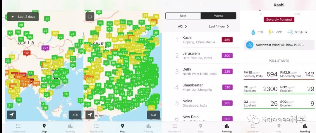 2020年2月18日全国空气指数,空气污染排行榜中华北、华中、华南和西部地区都已经退出了排名,污染排名第一的仍然是中国的喀什,不过从污染物我们可以明显判断出属于季节性沙尘以及燃料燃烧导致的高指数。