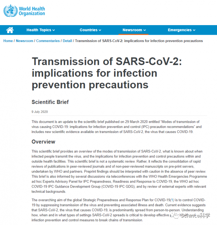 同一份文件警告说,可能会出现症状前传播,因为有些人可以在出现症状前一至三天检测出阳性。因此,他们可以感染其他人。当时,世卫组织表示,它没有记录在案的无症状传播,但表示没有足够的数据来证明无症状传播可能或不可能发生。