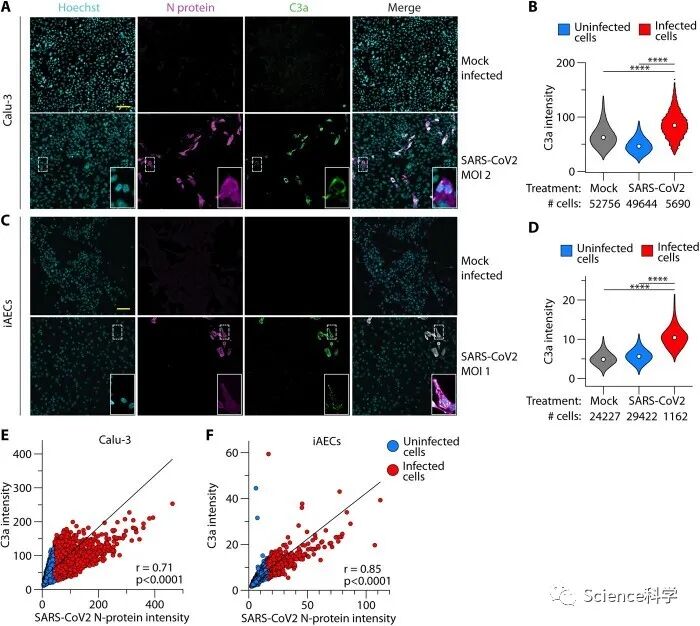 “我们观察到,SARS-CoV2感染这些肺部细胞会以一种前所未有的方式导致激活补体系统的表达,”Kazemian说。“这完全出乎我们的意料,因为我们并没有考虑到细胞内部这个系统的激活,或者至少没有考虑到肺细胞。我们通常认为补体来源是肝脏。”