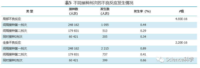 接种剂次差异上,第一剂次不良反应发生率高于第二剂次,同时第二剂次的不良反应低于第一针。