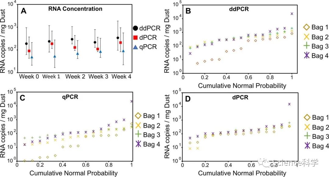 他们在97%的散装灰尘样本和55%的表面棉签中发现了病毒遗传物质,清洁人员在清洁前在房间里喷洒了氯基消毒剂,研究人员认为,消毒剂破坏了病毒的包膜和/或外壳,可能使其失去了传播能力。研究小组在样品到达实验室时对其进行了测试,即在房间被清洁后不久,然后每周再次测试样品。四个星期后,病毒的RNA在真空袋中没有明显衰减。研究人员表示,测试灰尘以监测COVID-19的爆发可能对具有高风险人口的小规模社区,例如养老院最有用。在这种规模下,测试室内灰尘也可能比直接对废水或所有个人进行常规测试的成本低。