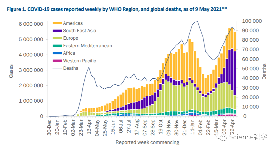 5月12日,世卫组织发布每周流行病学报告。报告指出,上周全球新增新冠肺炎确诊病例和死亡病例略有下降,但新增病例仍超550万例,东南亚地区新增病例已连续九周增加,其中95%的新增确诊病例和93%的新增死亡病例来自印度。