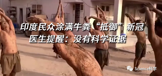 在印度古吉拉特邦,一些信徒每周前往当地一个牛庇护所(Gaushalas),全身涂满一种含有牛粪和牛尿的混合物,他们认为这种方法可以帮助抵御或治疗新冠。他们还会膜拜母牛,练习瑜伽,等到混合物变干后用牛奶或酪浆冲洗。