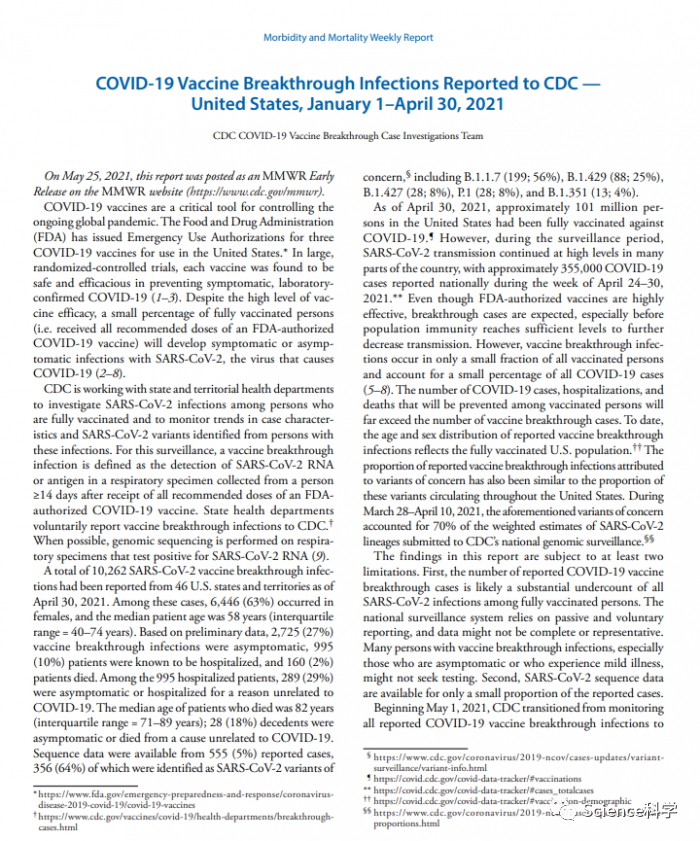CDC的报告记录了大量所谓的 “突破性感染”病例。这些是在所有推荐剂量的疫苗接种后至少14天的受试者中出现的COVID-19阳性病例。