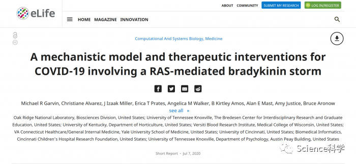 假说提供了一个模型解释 Covid-19 的很多方面,包括最奇特的症状。它还提出了十多种潜在疗法,其中部分已经被 FDA 批准。研究发现发表在《eLife》期刊上。根据这一研究发现,Covid-19 的感染通常是从鼻部的 ACE2 受体进入人体的,然后在人体内进入其它存在大量 ACE2 受体的组织如肠道、肾脏和心脏。这能部分解释新冠的心脏和胃肠道症状。一旦 Covid-19 在人体内取得立足之地,事情开始变得有意思了。Summit 分析的数据显示,Covid-19 不再满足于简单感染已表达大量 ACE2 受体的细胞,它开始主动劫持人体自身系统,欺骗它去上调 ACE2 受体表达较低水平或中等水平的组织,如肺部。肾素血管紧张素系统(RAS)控制着循环系统的众多方面,包括名叫缓激肽的化合物水平。缓激肽有助于调节血压。当 Covid-19 微调 RAS 系统时,会导致调节缓激肽的机制出现混乱。缓激肽受体再次致敏,而人体也停止有效分解缓激肽。研究人员称,最终结果是释放缓激肽风暴——缓激肽在人体内失控积累。根据缓激肽假说,正是它导致了许多致命结果。FDA 已经批准了多种针对 RAS 系统的药物,它们可疑减少缓激肽的产生,阻止致命的缓激肽风暴。研究人员还指出,维生素 D 可能是一种潜在的治疗药物,有助于阻止缓激肽风暴的形成。