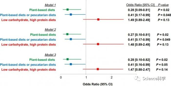 该调查还收集了个人背景、病史、药物使用和生活方式等信息。各种饮食被合并为植物性饮食(蔬菜、豆类和坚果含量较高,家禽、红肉和加工肉的含量较低);鱼素者/植物性饮食(同上,但增加了鱼/海产品);以及低碳水化合物-高蛋白饮食。