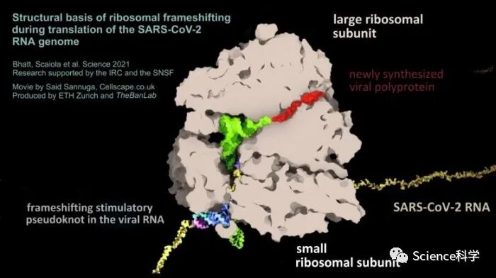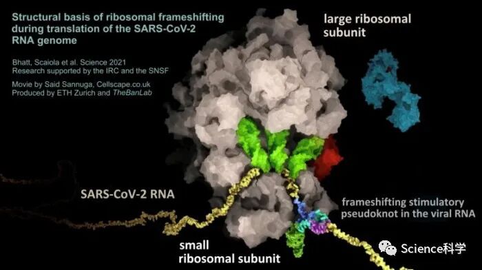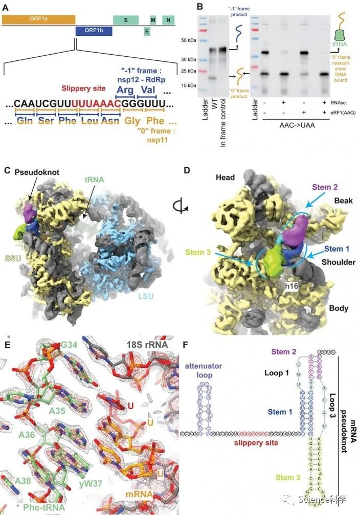 利用复杂的生化实验,研究人员成功地在SARS-CoV-2 RNA基因组的“移码”部位捕获了核糖体。然后他们可以使用低温电子显微镜研究这个分子复合物。