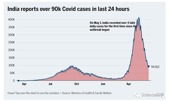 印度正在与始于2月并在4月和5月初加速的破坏性第二波疫情作斗争,这使该国的医疗基础设施不堪重负。患者家属在病床、氧气和药物短缺的情况下挣扎求助,而许多医生和其他卫生保健工作者则屈服于该疾病。虽然病例在5月初达到顶峰,但政府官员对可能在今年晚些时候袭击该国的第三波疫情敲响了警钟。