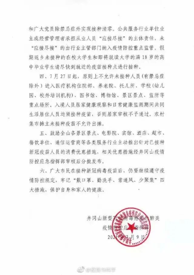 多地通知:未接种疫苗将影响出行 原则上不允许进入重点公共场所