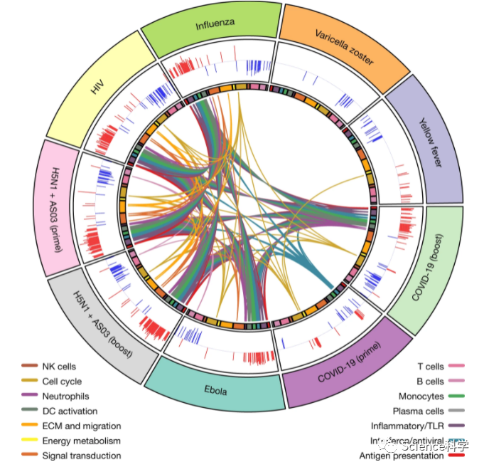 研究人员分析了疫苗接种者的血液样本。他们计算了抗体,测量了免疫信号蛋白的水平,并对242479个独立的免疫细胞的类型和状态的基因组中的每一个基因的表达进行了描述。