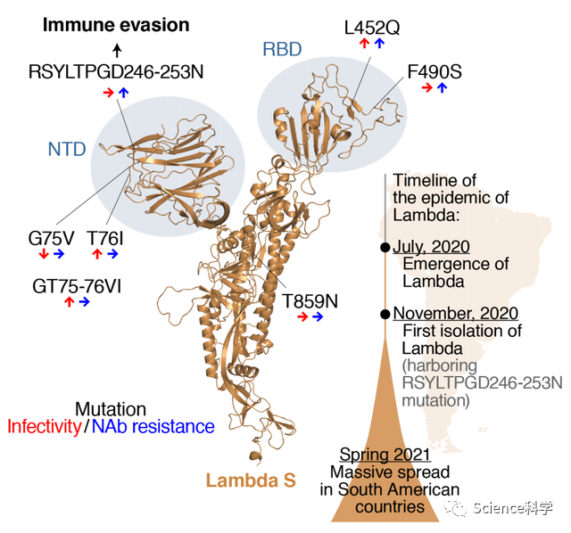 目前在美国已经发现了拉姆达感染病例,但数量不多。在美国,“德尔塔”仍然是主要传播毒株。然而,7月底发表的一项研究(尚未经过同行评议)发现,“拉姆达”的刺突糖蛋白的突变使该变体更具感染性,并且“拉姆达”有可能逃避中和抗体,这加剧了人们的担忧。