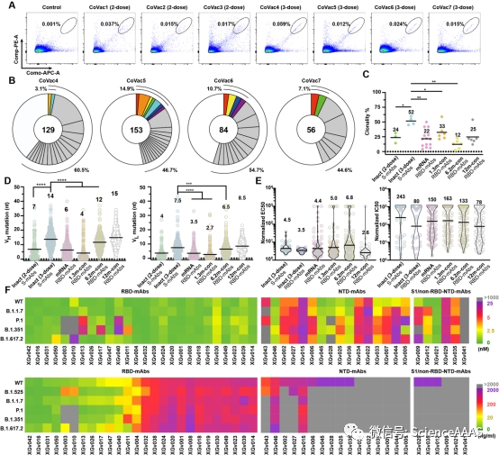 相比于两剂免疫和自然感染早期,接种三剂克尔来福后诱导出的中和抗体谱系发生变化,且呈现更高的体细胞突变率;相同谱系抗体的亲和力和中和活性也随之进一步提升,对阿尔法、贝塔、伽马和德尔塔等变异株均呈现出良好的交叉中和作用。