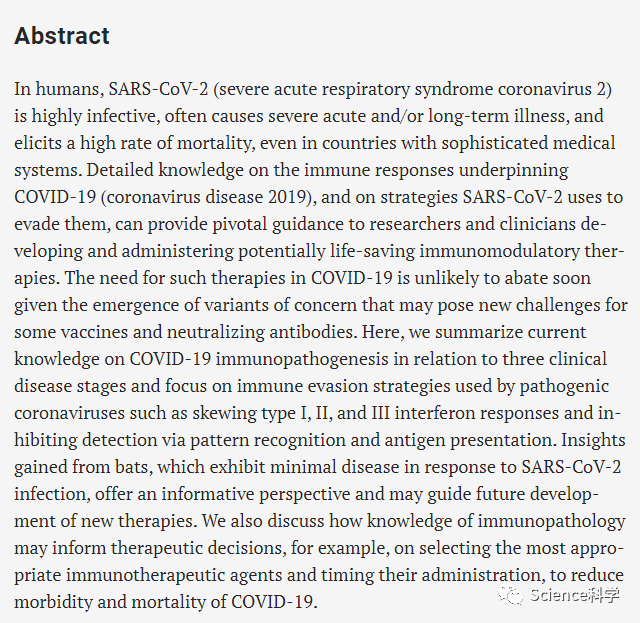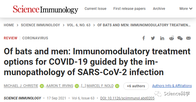 原标题为《Of bats and men: Immunomodulatory treatment options for COVID-19 guided by the immunopathology of SARS-CoV-2 infection》。