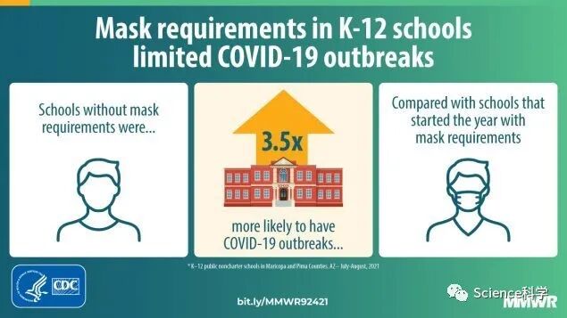 研究人员在新发表的研究报告中写道:“在调整了潜在的描述混杂因素后,没有口罩要求的学校发生与学校有关的COVID-19爆发的几率比有早期口罩要求的学校高3.5倍。”
